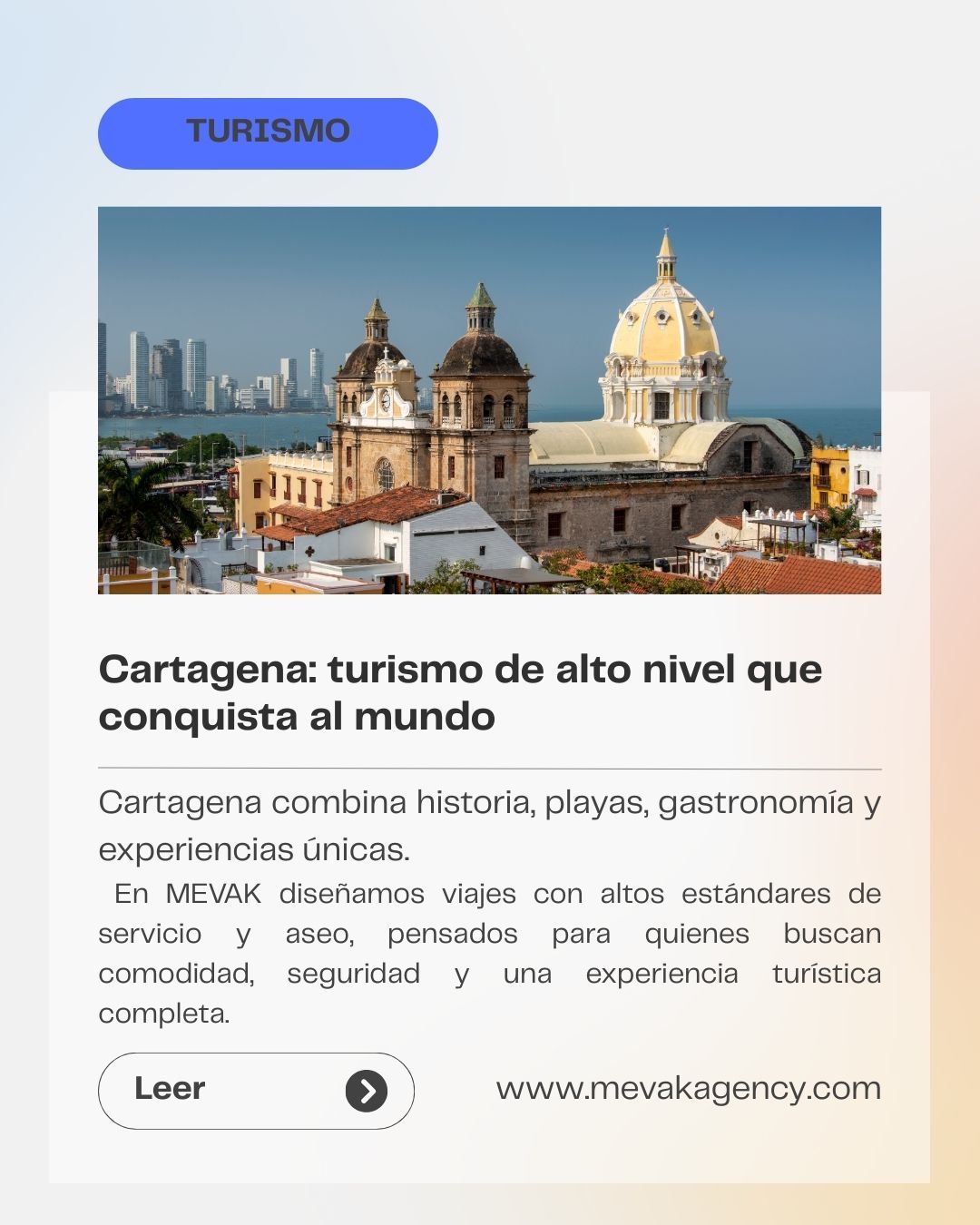 Cartagena se consolida como uno de los mejores destinos de Sudamérica en TripAdvisor Best of the Best 2026 Cartagena de Indias fue reconocida como el cuarto mejor destino de Sudamérica en los premios Best of the Best 2026, otorgados por TripAdvisor, uno de los portales de viajes más influyentes del mundo. Este reconocimiento se basa en miles de opiniones reales de viajeros que valoran la experiencia general, la calidad del servicio, la limpieza y el aseo, la hospitalidad y la autenticidad del destino. El galardón Best of the Best distingue a los destinos que se mantienen dentro del 1 % mejor calificado a nivel global, consolidando a Cartagena como una ciudad competitiva, confiable y altamente valorada por el turismo internacional. La ciudad destaca por su combinación de historia, cultura, playas y gastronomía, así como por la mejora constante en estándares de servicio y aseo urbano, factores clave para el viajero moderno. Turismo de calidad y confianza Hoy, el aseo es un factor decisivo al elegir destino, alojamiento o experiencia. Cartagena ha avanzado en buenas prácticas relacionadas con la limpieza en alojamientos, tours, transporte turístico y espacios históricos, fortaleciendo la percepción de seguridad y bienestar del visitante. MEVAK y el turismo premium en Cartagena Desde MEVAK AGENCY, celebramos este reconocimiento como un respaldo a nuestra visión de turismo organizado y de alto nivel. Nuestros servicios de alojamiento, experiencias y transporte se diseñan con altos estándares de calidad y aseo, cuidando cada detalle para ofrecer experiencias memorables. Cartagena continúa posicionándose como un destino preparado para el turismo internacional, y en MEVAK seguiremos aportando a ese crecimiento con profesionalismo, excelencia operativa y compromiso con la calidad.